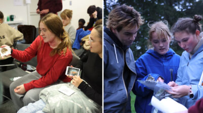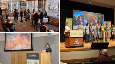 Pictured above: Students study together for the Eco-Meet test event and work together to complete…