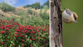 Photos: Monarda didyma and native grasses in Brooklyn Bridge Park (photo: Grace Suh). Brown-Headed Nuthatch (photo:…