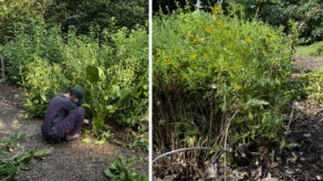 Pictured above: Summer garden maintenance. Bamboo hoops used to hold plants up. Photos and article…