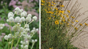 Above left: Rattlesnake Master, Missouri Botanical Garden; Above right: Sideoats Grama, Lady Bird Johnson Wildflower…