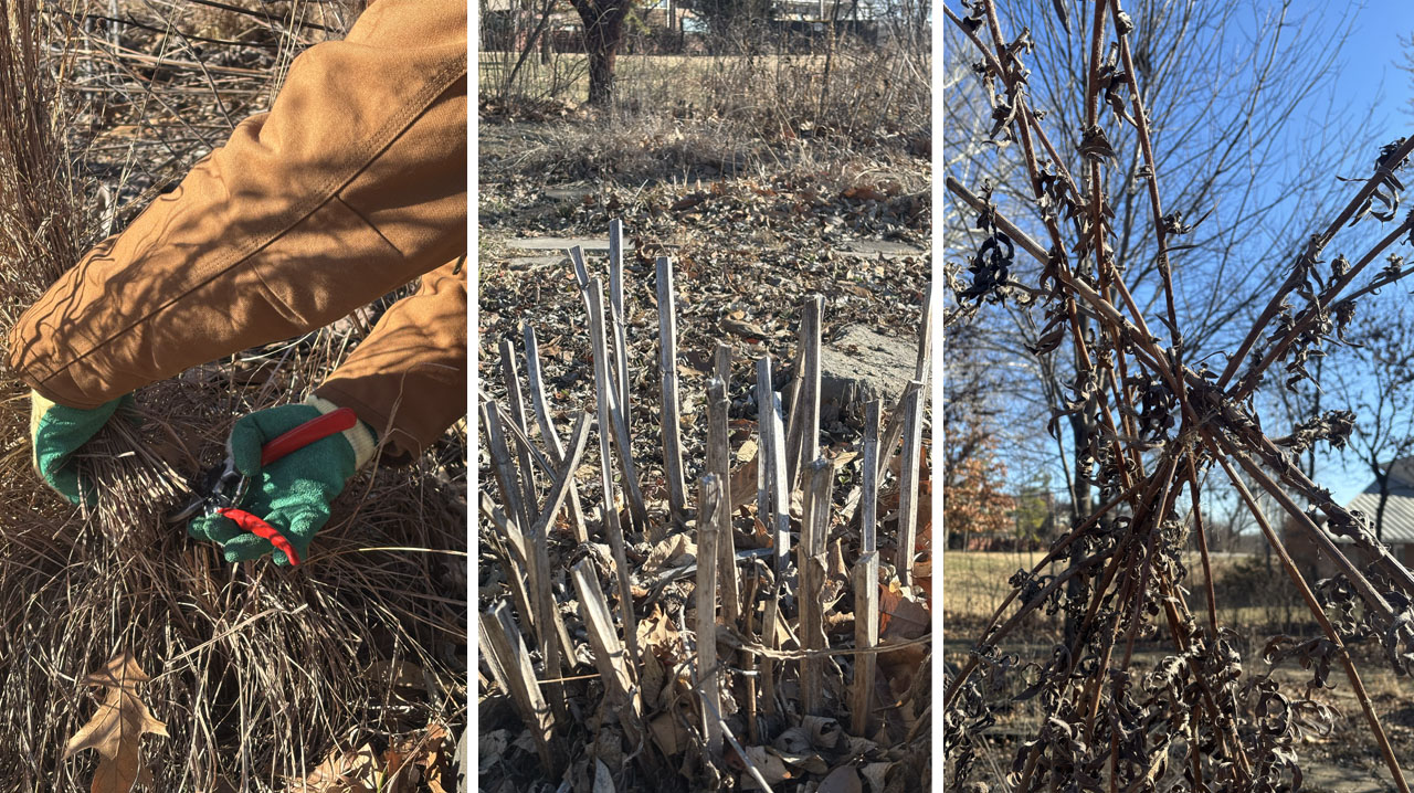 Some plants, like Blue False Indigo (Baptisia australis) and other Kansas City tumbleweeds, break their stems off themselves making for an easy clean up job for the gardener! Be sure to leave that plant material in your yard if you can. One fun way to store loose, cut stems is by creating artful brush piles as seen pictured above. If you can’t leave them in your yard, composting is the next best thing.