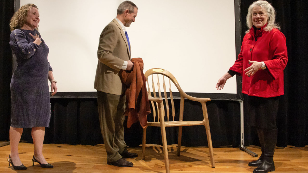 To commemorate the recognition, Deep Roots presented Pauley with a plaque made of White Oak wood, carved by Kansas City Art Institute student Emma Bland. Deep Roots also presented a White Oak wood chair carved by artist and Deep Roots volunteer Michael Chapman. Pauley’s White Oak Award chair is on display now at the Anita B. Gorman Conservation Discovery Center, located at 4750 Troost Avenue in Kansas City, where it will reside permanently.