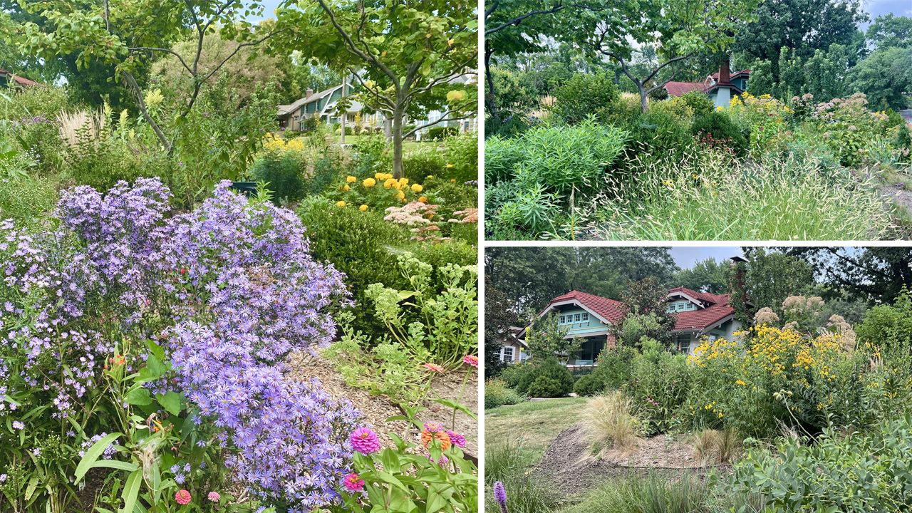 After a visit to The High Line gardens in New York City several years ago, where he was particularly inspired by particular Oudolf’s use of ornamental grasses, Mike added sweeps of Prairie Dropseed (Sporobolus heterolepis) and Blue Grama (Bouteloua gracilis). And as a former beekeeper Mike has always emphasized pollinator-friendly blooms like goldenrods and asters.