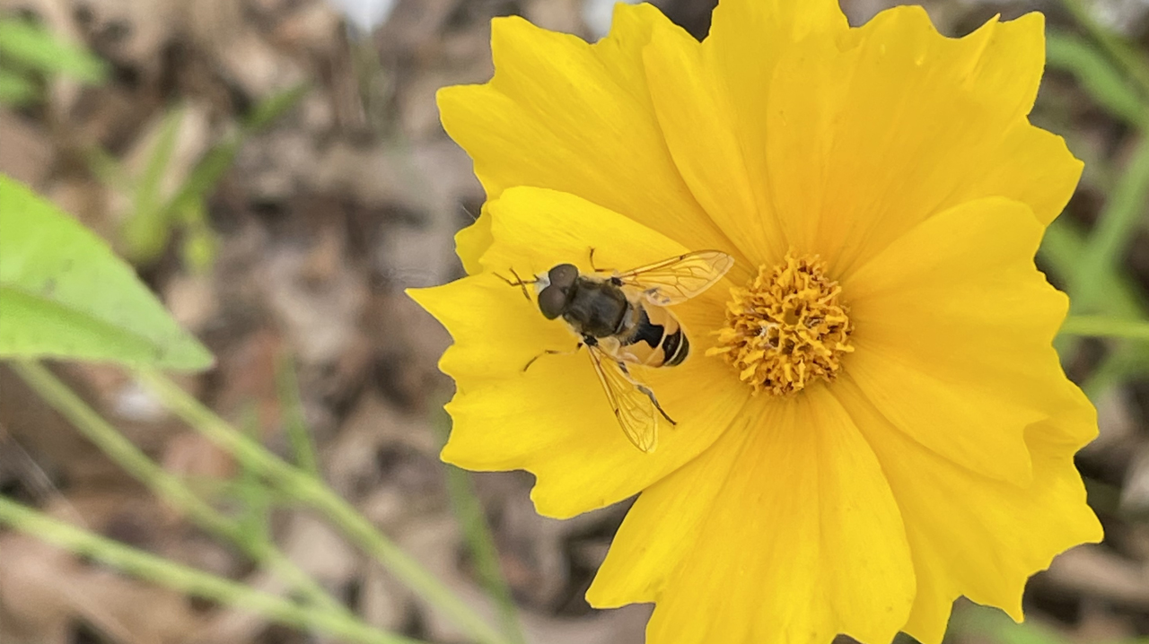 Pictured above: Bee-mimicking Fly on Lanceleaf Coreopsis (Coreopsis lanceolata). Photograph by Cydney Ross.